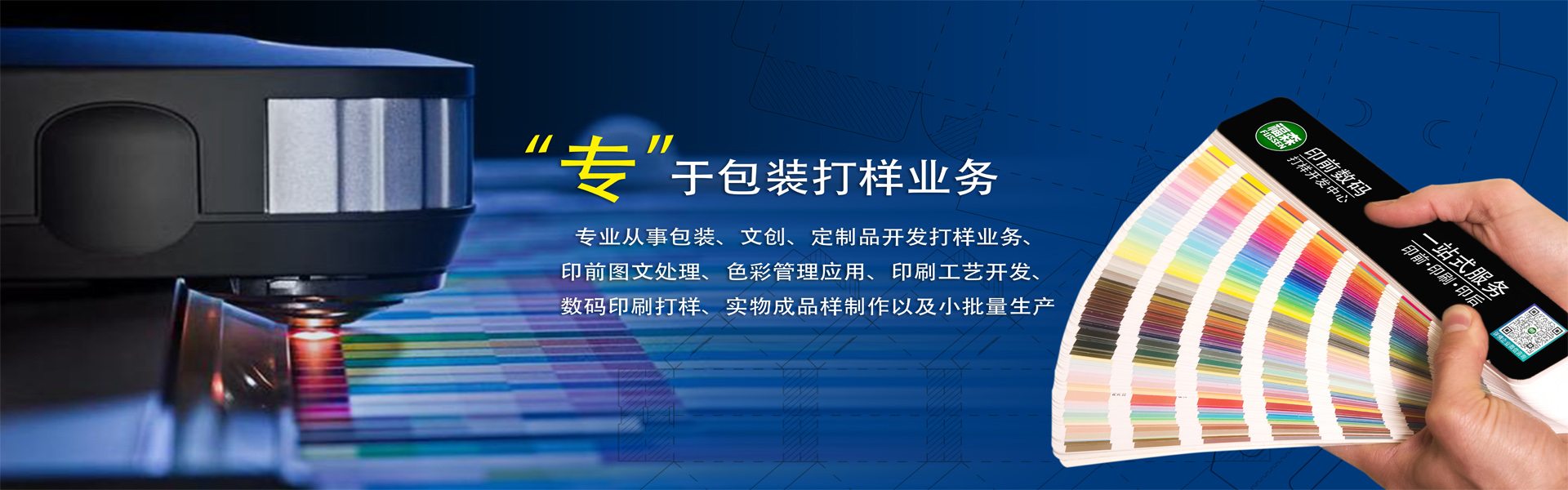 为客户提供印前文件处理、数码印刷打样、印后成品制作一站式技术服务!
